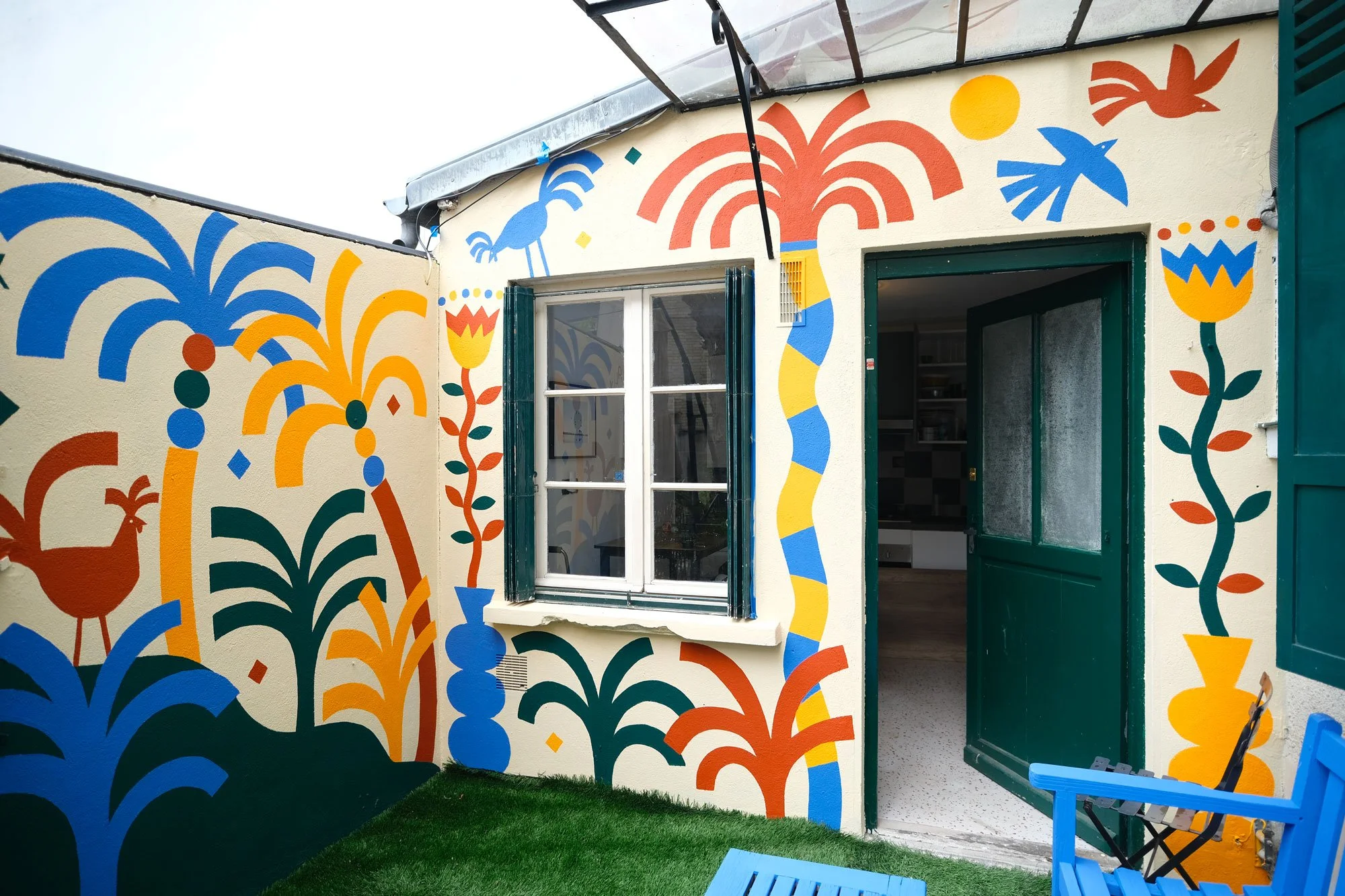 Décoration de la cours extérieur des bureaux de l’agence de production Coq Prod à la Garenne Colombes