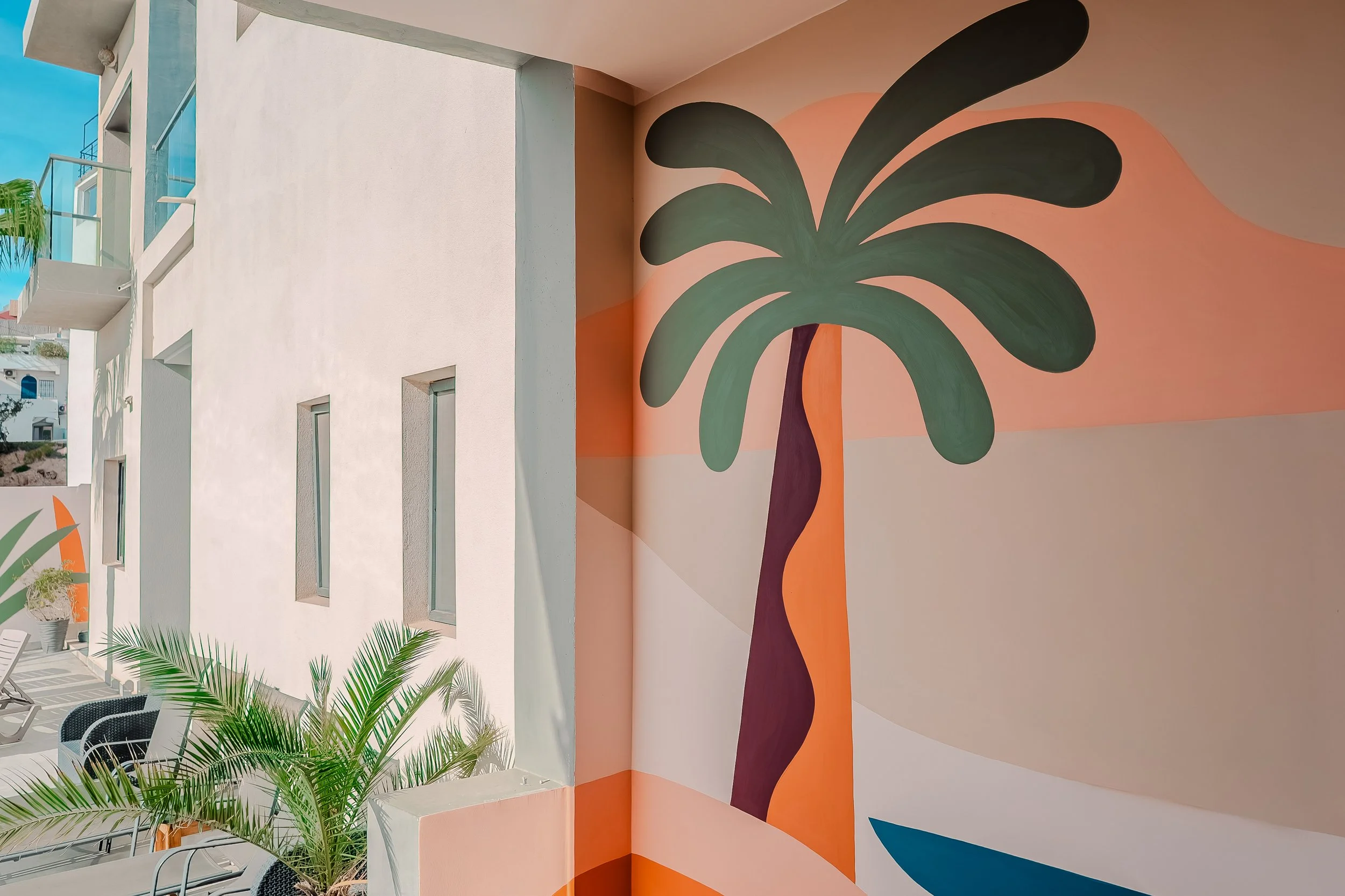Durant trois semaines au Maroc, dans le petit village de Tamraght, j’ai eu le plaisir d’apporter une touche colorée à la résidence La Petite Palmeraie.